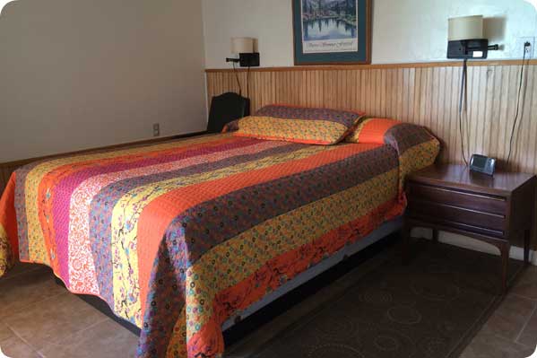 This studio sleeps 2, comes with a Full Size bed, a Twin bed and a full kitchen.